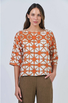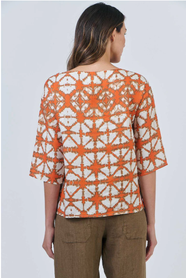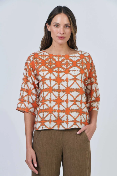 For the woman who loves a touch of softness in everything she wears. The GA584 features a rounded neckline, three-quarter sleeves, and a subtle drop-tail hem at the back, offering effortless movement and comfort. Its breathable 100% linen fabric makes it perfect for casual outings or pairing with your favourite bottoms.