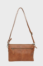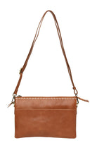 Compartment cross body bag, top zip, three inside sections, front outside pocket, back outside zip, attractive hand stitch detail.