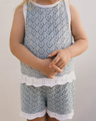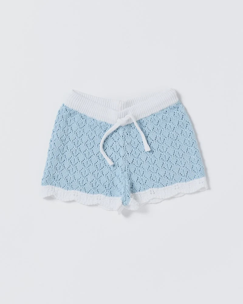 The Bella Knit Shorts are the perfect blend of comfort and charm. Featuring a delicate pointelle design in a dreamy powder blue, they’re finished with scalloped hems and a contrast white waistband for a vintage-inspired touch. Soft, stretchy and oh-so-cute, these are made for twirling, toddling, and everything in between.