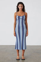 Get ready to rock this summer in our Horizon Stripe Organic Cotton Blend Knit Dress! With its midi length and comfortable knit fabric, you'll be the trendiest gal at any summer party. The playful stripe pattern adds a fun touch to this must-have dress.