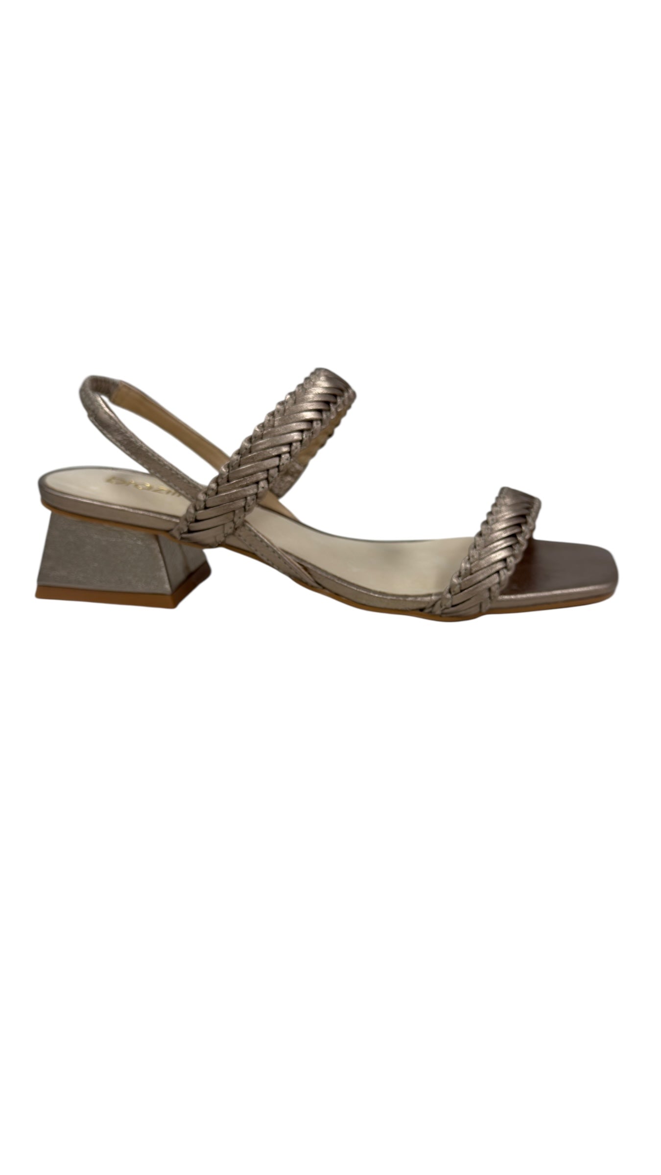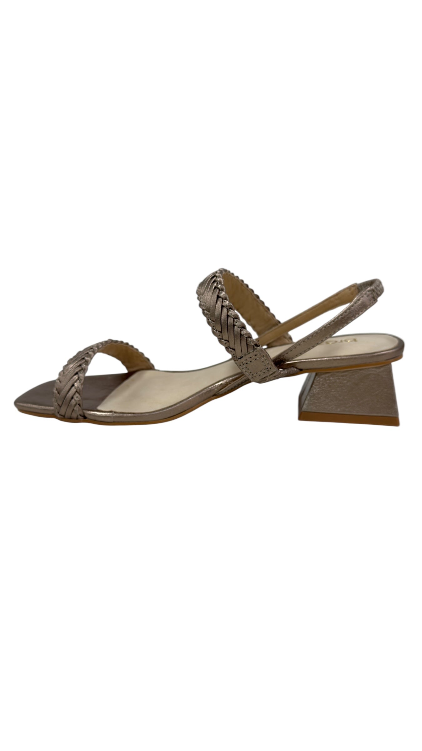 Step out in style with these charming champagne-coloured heels featuring a comfy low block heel. The playful design includes two plaited straps and a stretchy elastic ankle strap for a perfect fit that keeps you dancing all day. Perfect for adding a touch of fun elegance to any outfit!