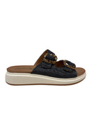Slip into style with the Beacon - Black Raffia! These raffia slides feature two buckles for a secure fit and a soft footbed for all-day comfort. Perfect for a day at the beach or a night out, these slides are a must-have addition to your summer wardrobe.