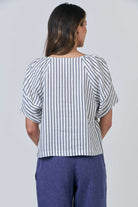 Why blend in when you can stand out in stunning prints? With its fresh blueberry stripe design and flattering V-neck, GA589 is the perfect top for the fashion-forward. Its relaxed fit drapes beautifully, and the lightweight 100% linen fabric ensures you can wear it all day without a second thought. Wear it with anything from jeans to skirts for a chic, modern look.