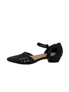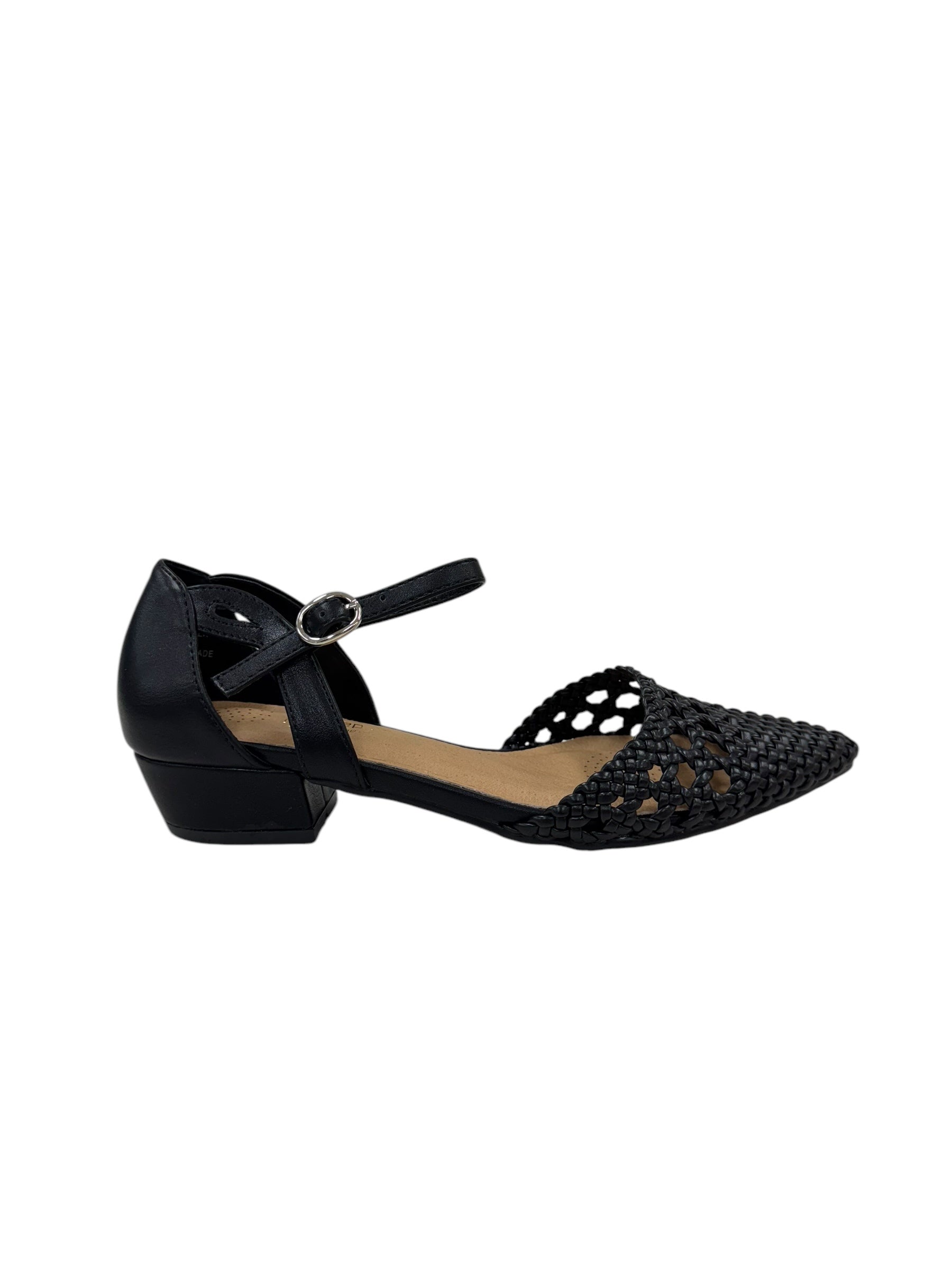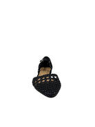 Callie is the perfect blend of style and comfort! These black leather flats feature a unique woven design that adds a touch of playfulness to any outfit. With Callie, you'll step out feeling confident and chic. (Did we mention they're also incredibly comfortable?)