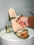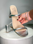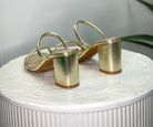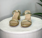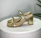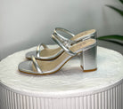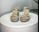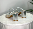 Clio by Katie & Me is the perfect style for your next event. Simple in it's silhouette, made up of a beautiful tubular leather that hugs the foot. Sat upon a 8CM block heel. Available in Silver & Gold.
