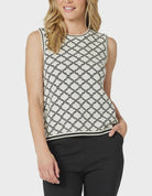 Clover Print Sleeveless Knit Top - Ivory/Black