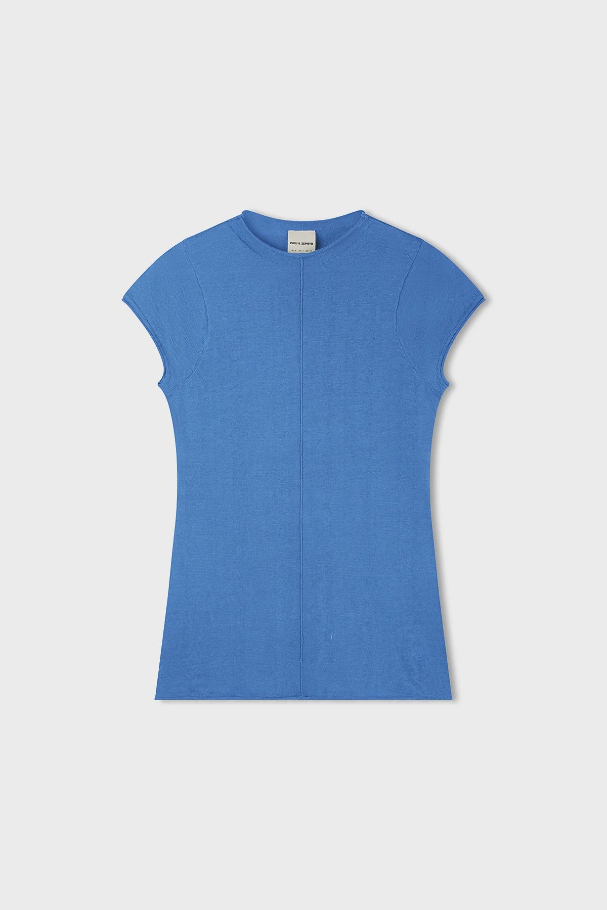 The Ocean Blue Cotton Blend Knit Top offers both style and comfort. The soft, sheer knit fabric provides a lightweight, breathable feel, making it ideal for warm weather layering or wearing on its own. Designed with a high neckline, sleek cap sleeves, this top is elevated by a subtle centre back seam detail. Its minimalist aesthetic makes it a versatile piece for casual or refined outfits.