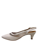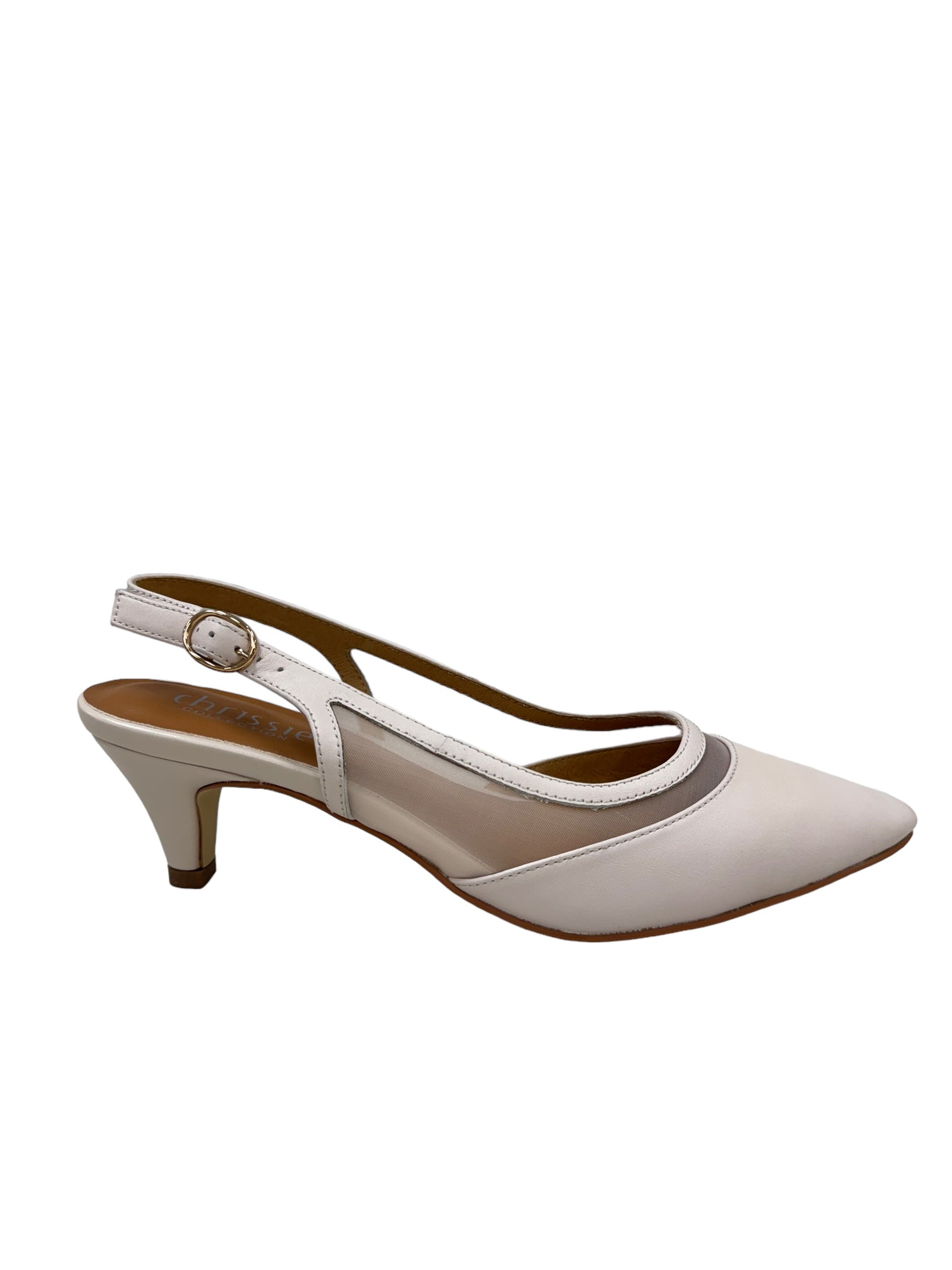 Indulge in elegance and sophistication with the Cyprus Kid Blush. This classic sling back features a point toe and a feminine kitten heel, crafted from nude leather and adorned with delicate mesh detailing. Embrace luxury and elevate your style with this timeless shoe.