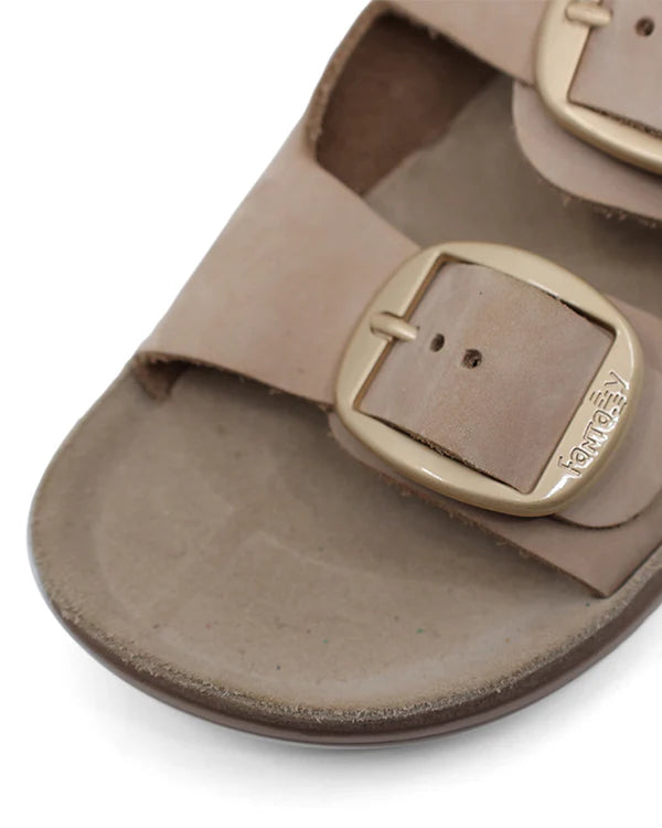 Adjustable straps on the top with buckle closure and a cushioned footbed that gives a maximum feeling of comfort, leather slides are simply a classic!