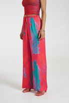 The Elastic Waist Pants made from a silky viscose rayon blend featuring Summi Summi's hand-painted artwork print - VERONA . These pants are designed for a sleek yet relaxed fit.