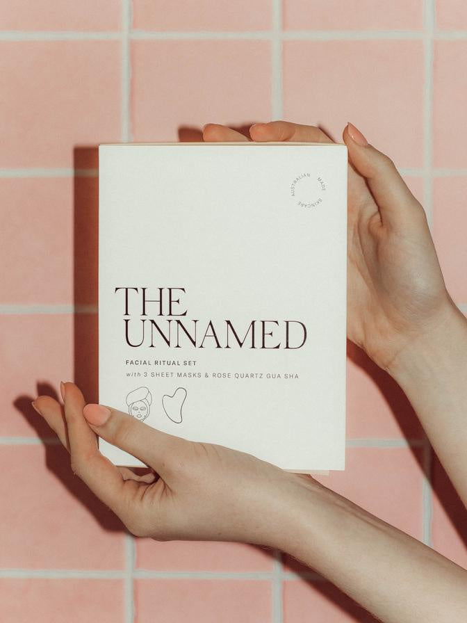 The Facial Ritual Set contains all three of our anti-aging sheet masks (Hydrating, Brightening & Firming) and a rose quartz gua sha massage tool to help lift and sculpt your skin, release tension and improve circulation. Enclosed in a beautiful box, this curated set makes the perfect gift (or gift it to yourself, we won’t judge).