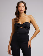 Get ready to slay in the Holly Body Suit. This black, strapless bodysuit features a unique cut out detail, adding a touch of edginess to your look. With a brief style bottom, this suit will hug your curves and give you a flawless silhouette. Time to turn heads, babe!