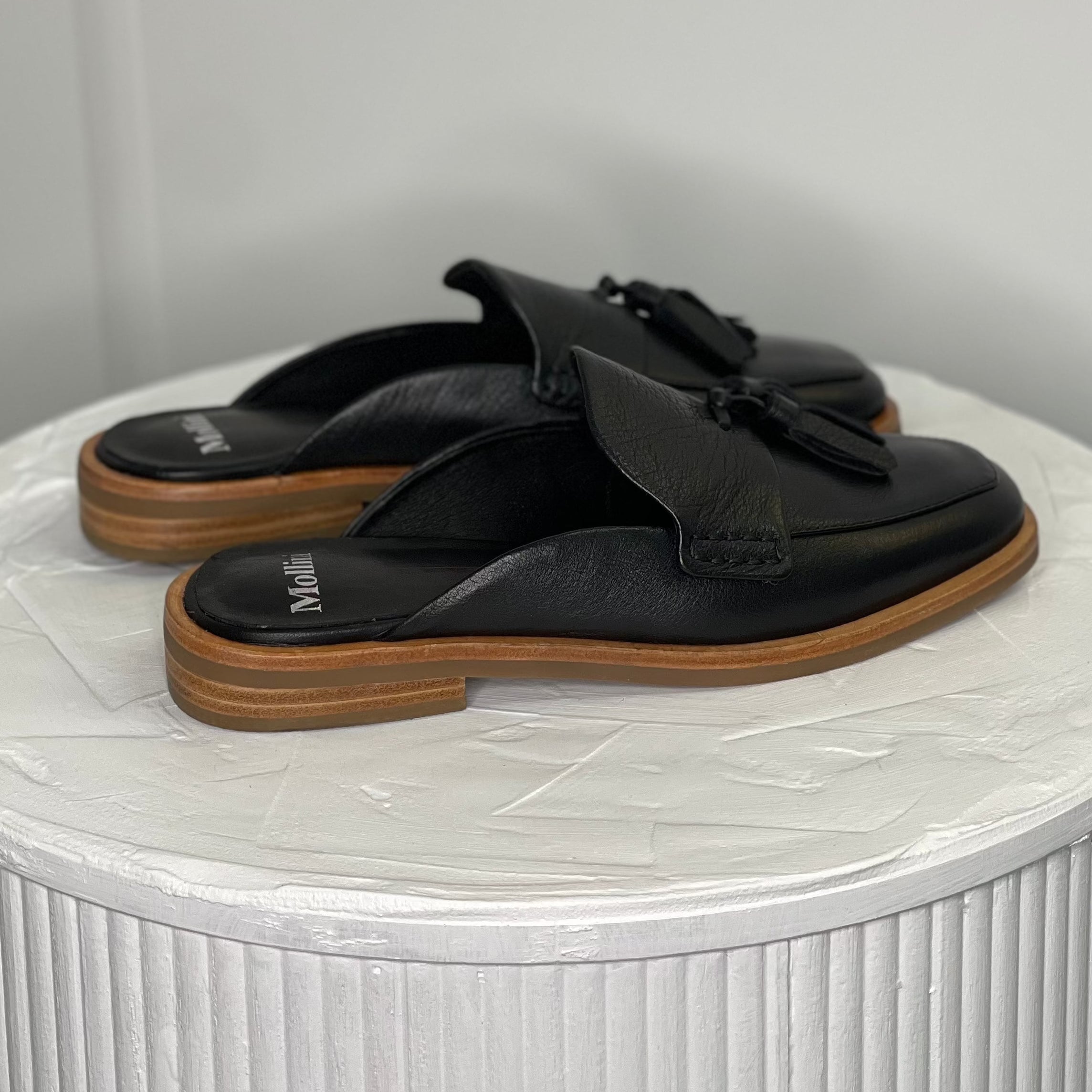 Discover comfort in the timeless elegance of Izaray loafers. Featuring classic slip on design and a tassel detail, these shoes are perfect for everyday wear. Step on to a 2cm timber stack heel and let your feet breathe as you go about your day in style.