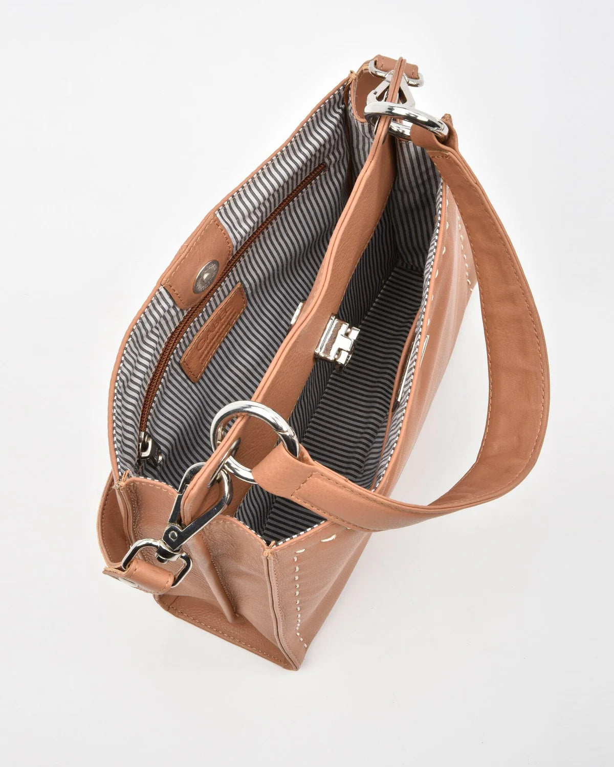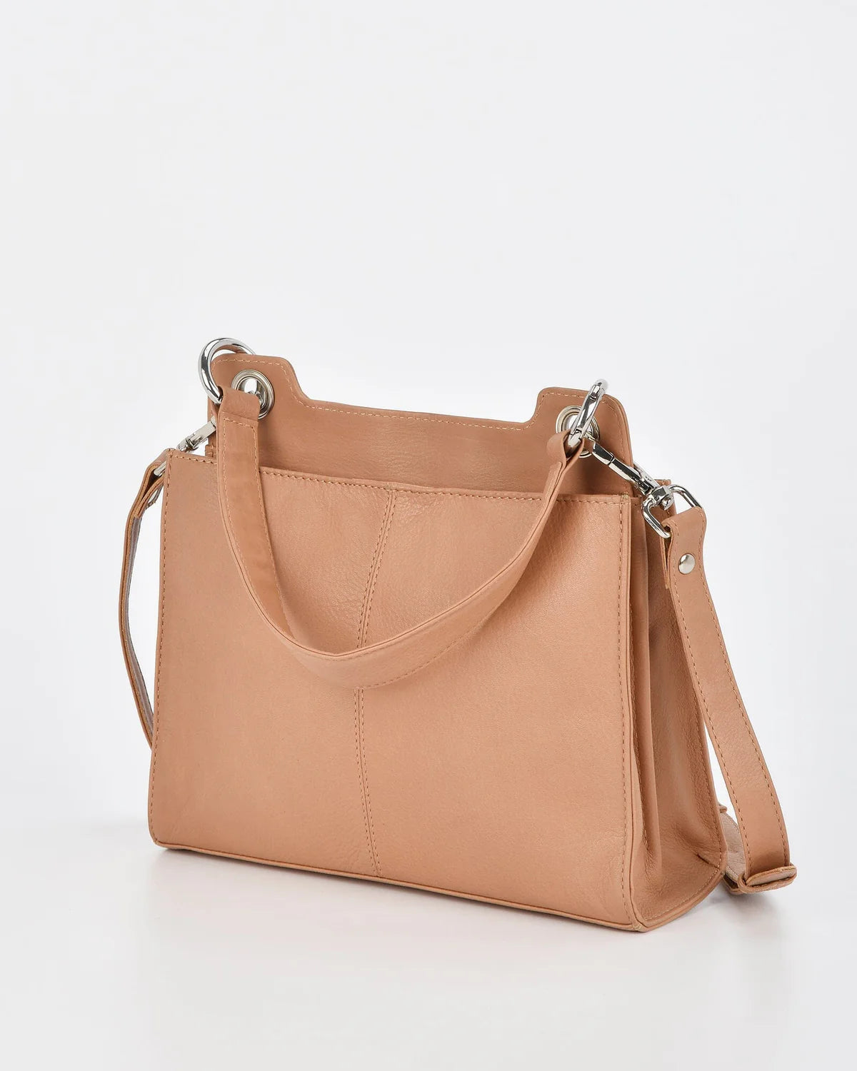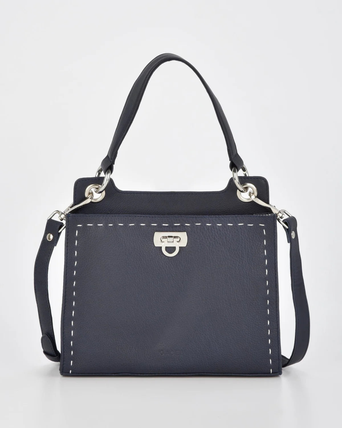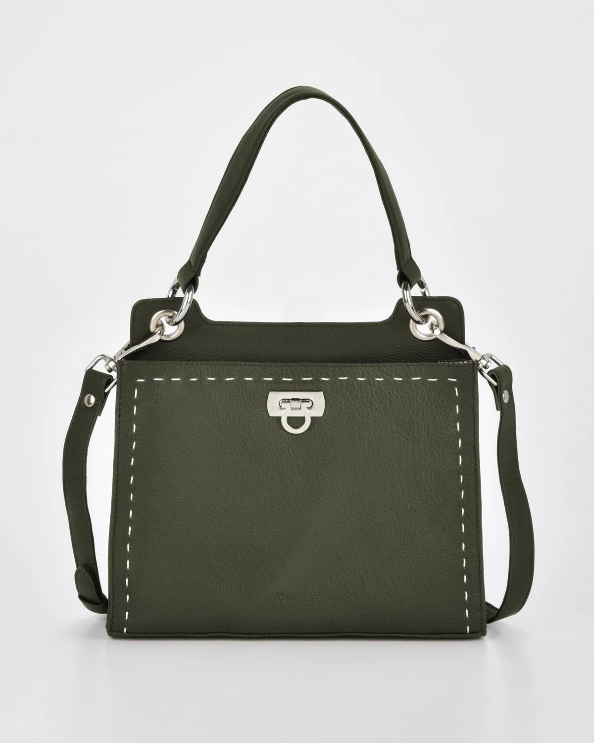 Introducing Lulu, a luxurious leather handbag that exudes timeless elegance. Adorned with exquisite silver hardware and a secure turn-lock closure, this classic design boasts a sturdy structure that commands attention. Lulu offers the convenience of an interchangeable strap or top handle, catering to your style and needs. With two external compartments – one featuring the convenient turn-lock closure and the other with a secure snap closure – accessibility is made effortless. Its interior is fully lined and complemented by sleek silver hardware, while also housing two pockets, including a practical internal zip pocket.