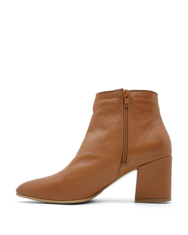 Indulge in luxury with our Maggie Ankle Boot. Crafted with a leather upper, leather sock, and fabric lining, these boots offer both style and comfort. The block heel and elastic gusset provide a secure fit, while the inner zip entry makes them easy to slip on. Handmade in Turkey, these boots are a true testament to craftsmanship.