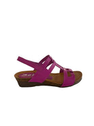 Stride in style with Opine fuchsia sandals. Soft leather upper and lining keep your feet cozy while velcro fastening and a cork footbed offer supreme comfort. Synthetic sole ensures maximum durability for your fashionable footwear. Embrace the summer in style with Opine!