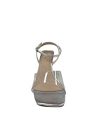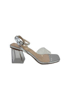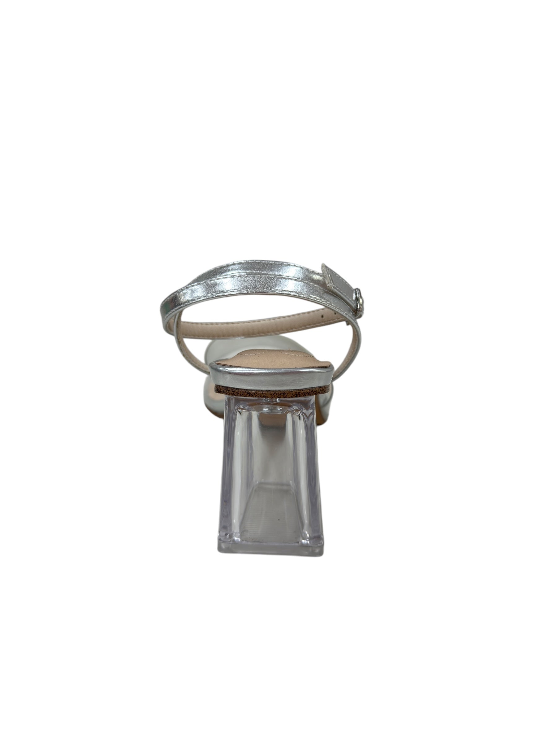Introducing Phoebe, the perfect silver and clear heel for all your event and party needs. With its stylish block heel, it's the must-have shoe for any summer occasion. Don't just be stylish, be Phoebe-licious!