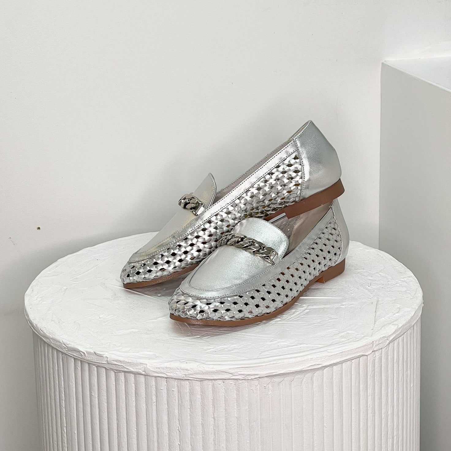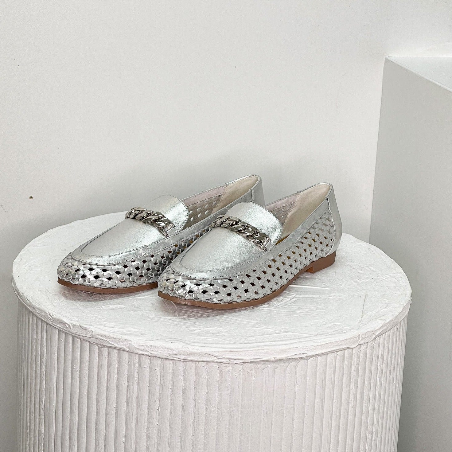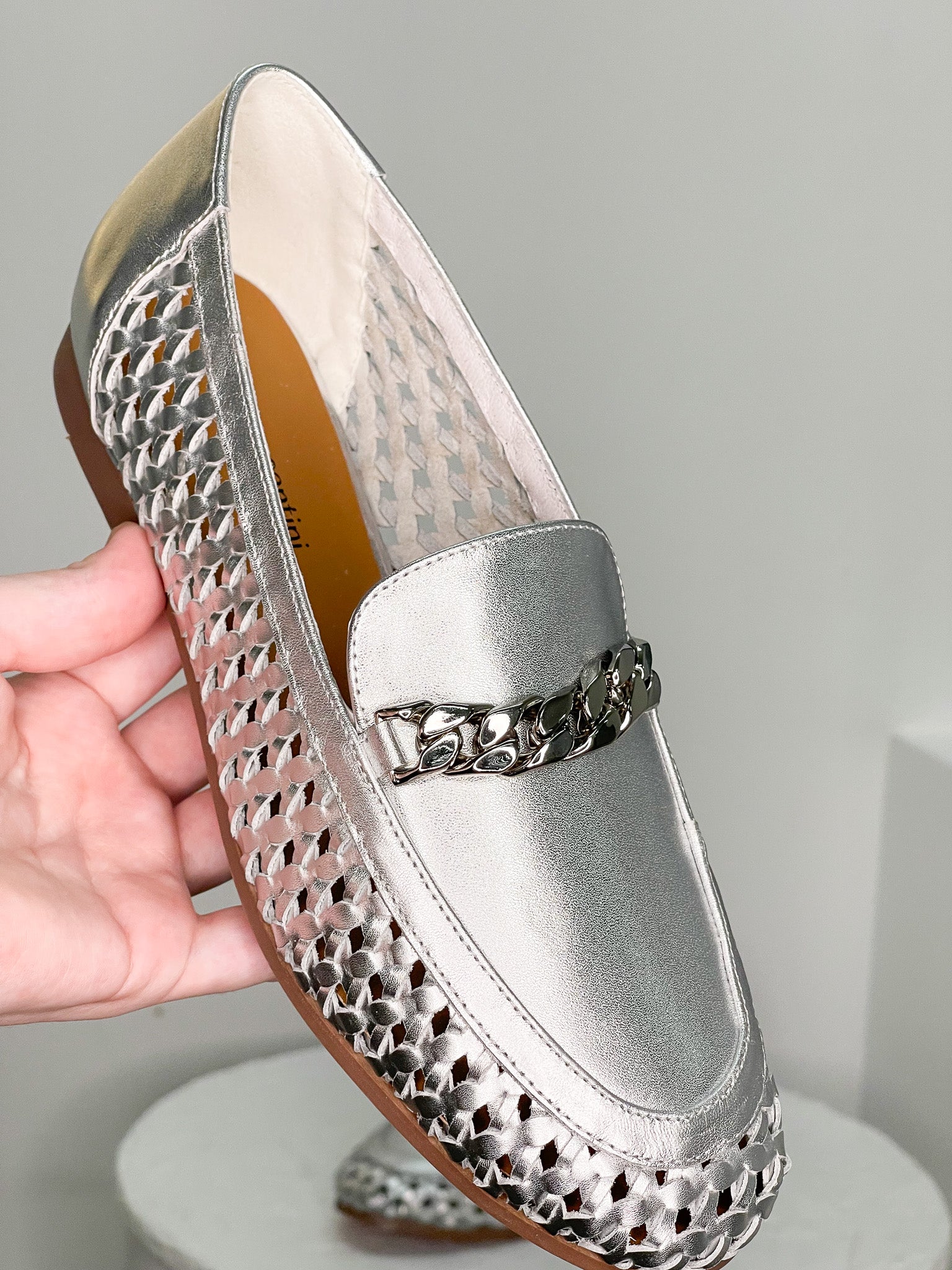 Introducing Pyramid - Silver Loafers, the perfect combination of style and comfort. With a stunning silver finish and meticulous craftsmanship, these loafers will make you stand out from the crowd - while feeling relaxed and comfortable. Treat your feet to Pyramid!
