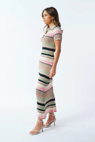 Remi Ribbed Knit Midi Dress - Green / Multi Stripe