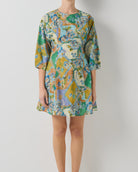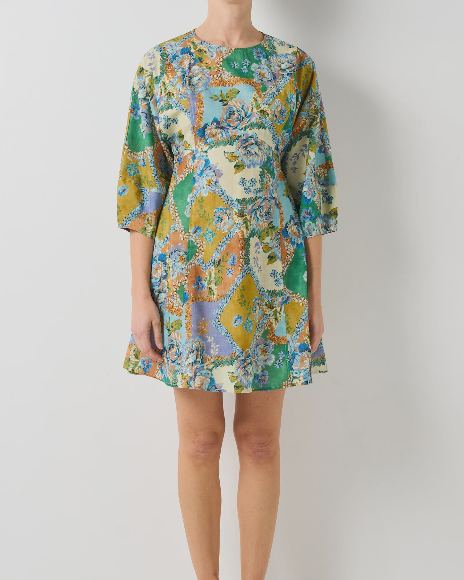 The Rivoli Dress is a charming, playful piece that combines a flattering A-line silhouette with a lively, eye-catching print like "Peony Patchwork." This mini dress features a round neckline and elbow-length puffed sleeves for a touch of vintage-inspired elegance. The relaxed fit and soft, breathable fabric make it perfect for various occasions, whether you're attending a casual event or a weekend outing. Pair the Rivoli Dress with sneakers for a laid-back look