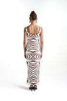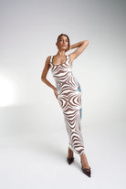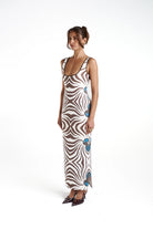 The Scoop Neck Maxi Dress has been expertly crafted from stretchy structured rayon and showcases the hand-painted NAUTILUS as a placement print.