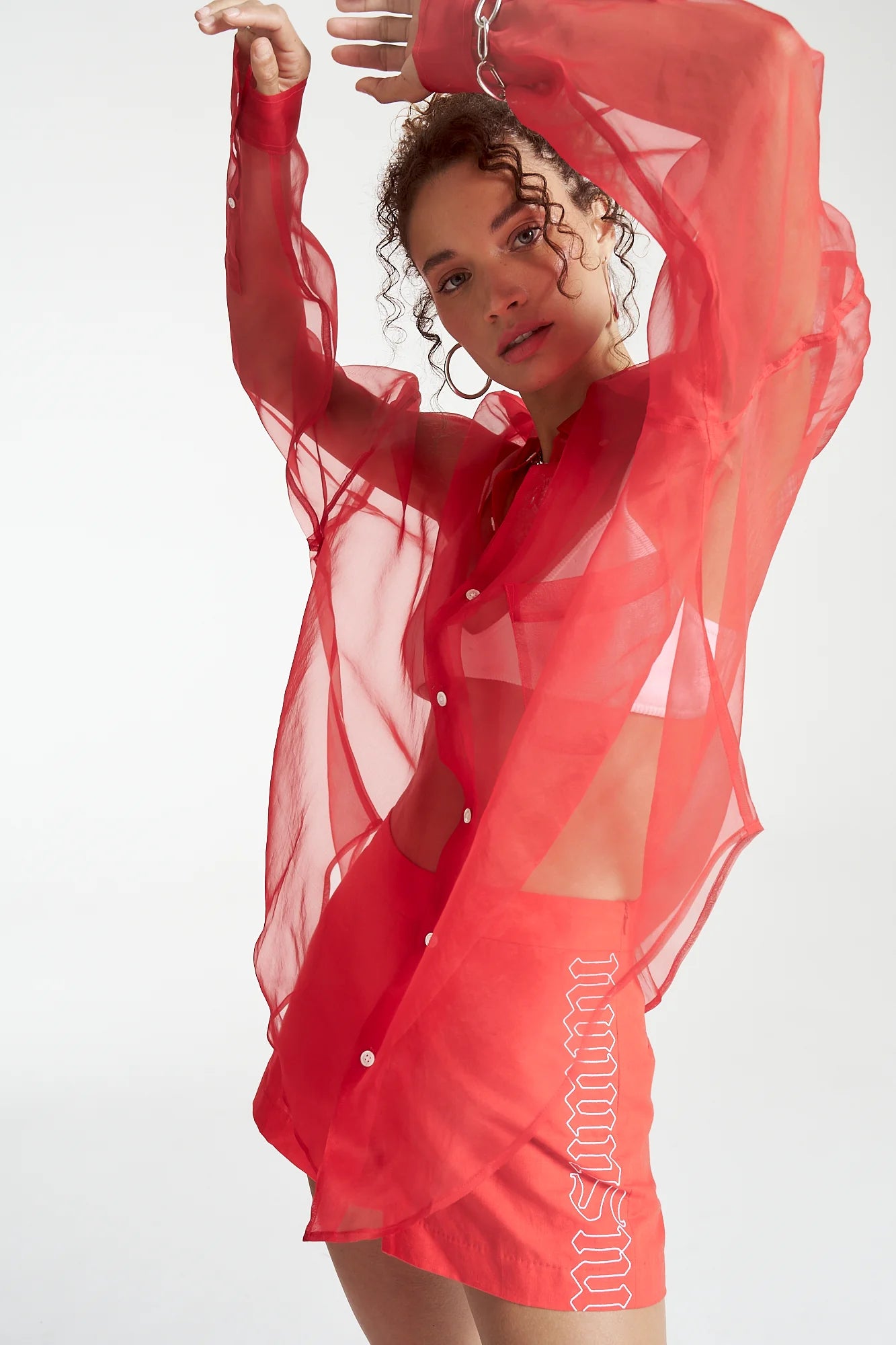 The Sig Fitted Shorts are designed with a high waist and relaxed leg silhouette, making them both figure-flattering and versatile. Made from a Scarlet red linen blend with the Star x Lovers Summi Summi logo embroidered on each side.