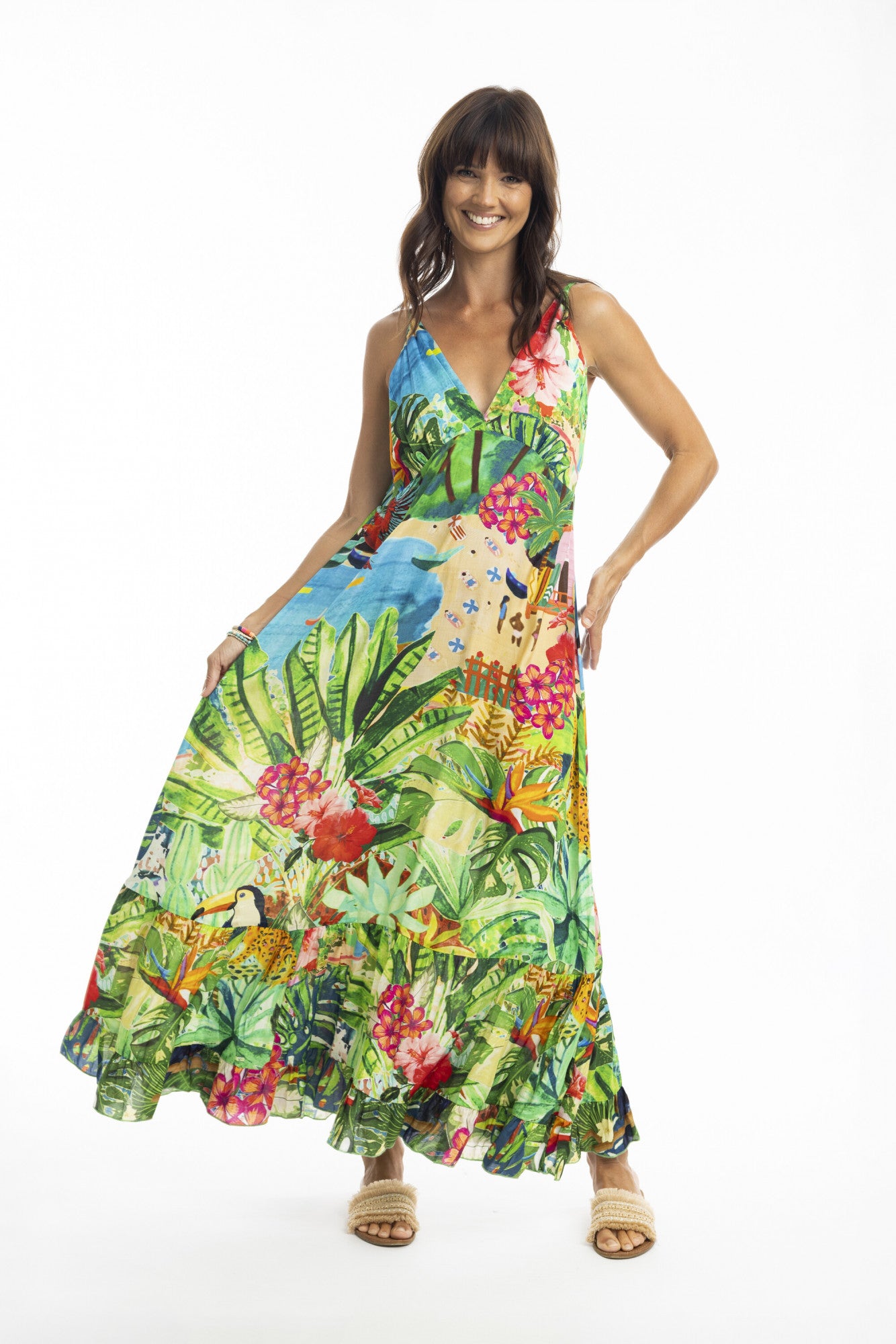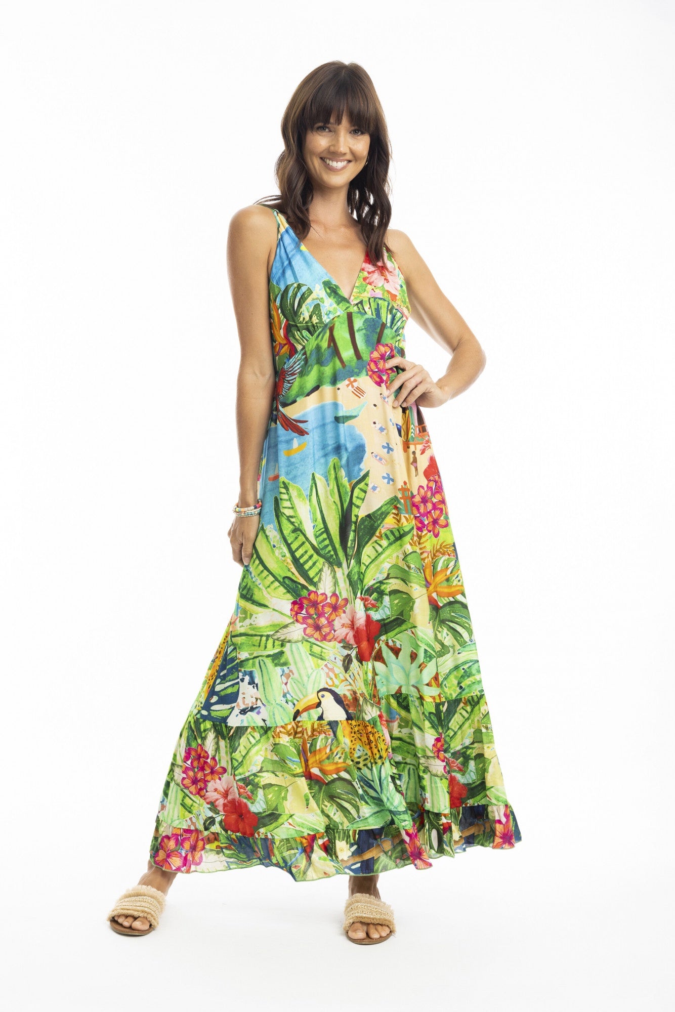 Get ready to turn heads with our Skye Dress Maxi Strappy! Made from 100% rayon, this maxi dress is both stylish and comfortable. Perfect for any occasion, the dress features a strappy design that will make you stand out in a crowd. Don't miss out on this unique and playful addition to your wardrobe!