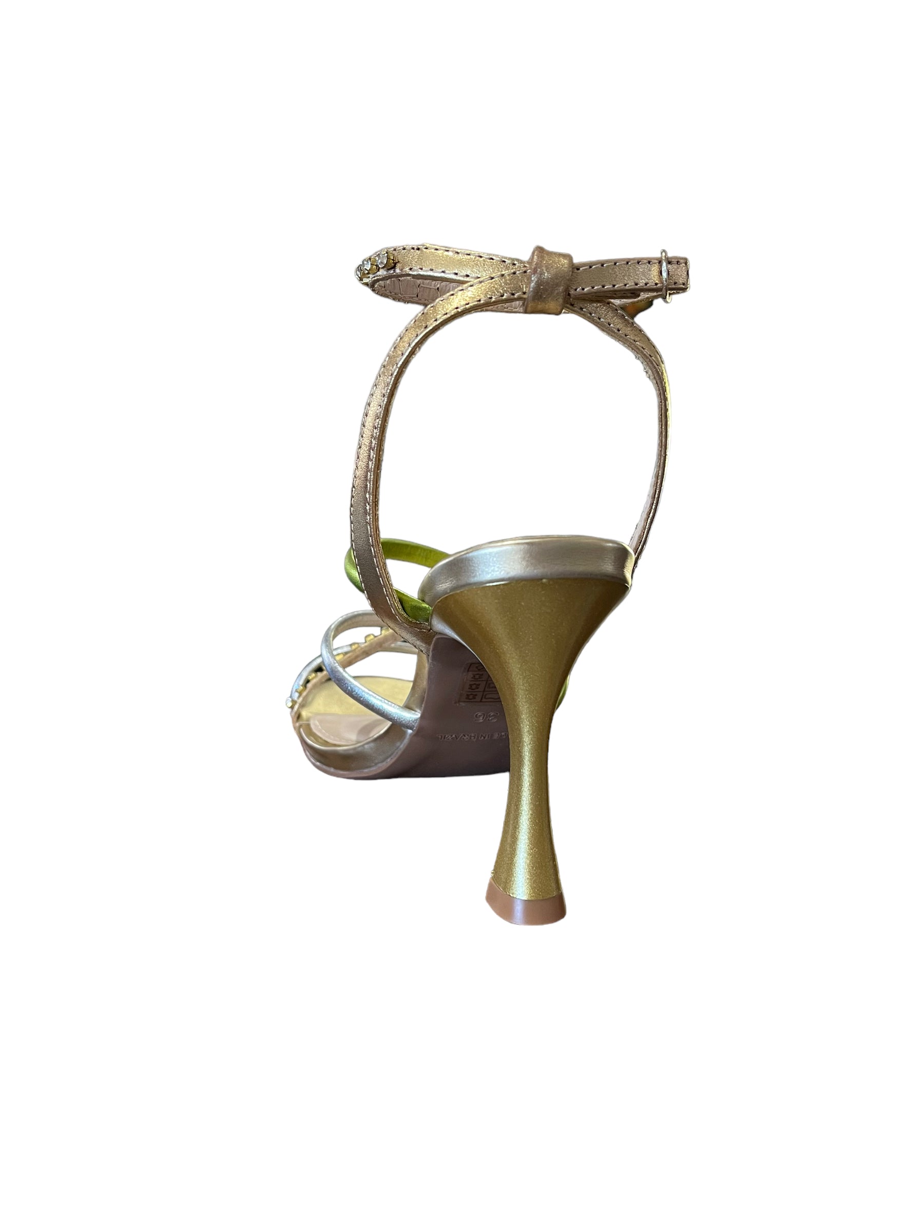 Introducing Lauren, the perfect blend of sophistication and glamour for the modern woman. Crafted with green sliver and gold details, a blinged memory foam foot bed, and an 8cm heel, this shoe is perfect for any special occasion. Make your statement with this Brazilian made shoe.