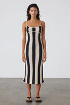 Get ready to rock the beach in this Stone Stripe Organic Cotton Blend Knit Dress! With a midi length perfect for summer, you'll stay cool and comfortable all day long. The soft knit fabric adds a touch of luxury to this fun and playful dress. (But don't worry, we won't tell anyone it's organic.)