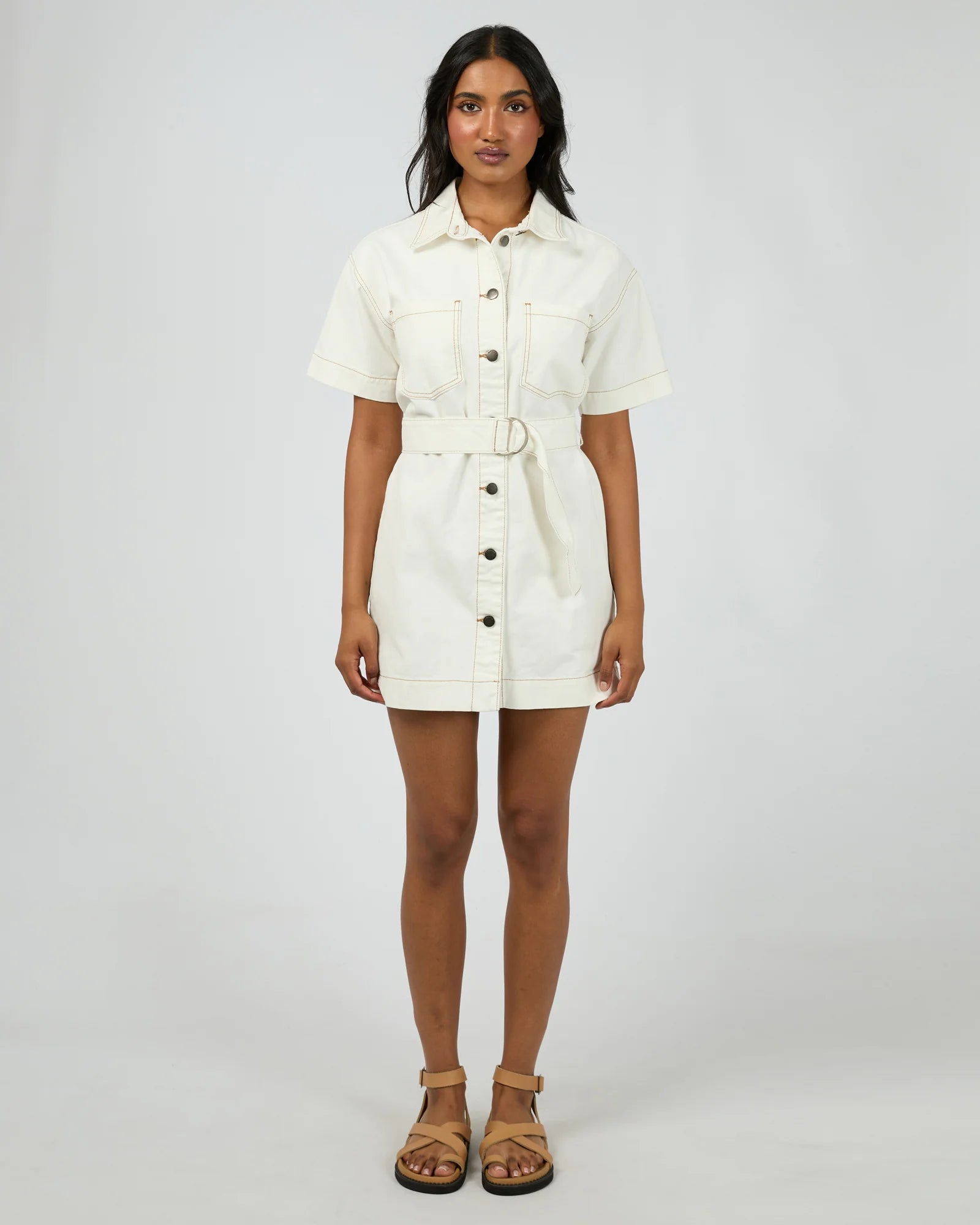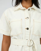 This Sunny Denim Dress combines classic style with practical details. Featuring a collared neckline and button-down front, it offers easy wear and a timeless look. The adjustable belt lets you customize the fit for comfort and flattering shape. Perfect for casual outings or layering, this mini dress brings effortless charm to your wardrobe.