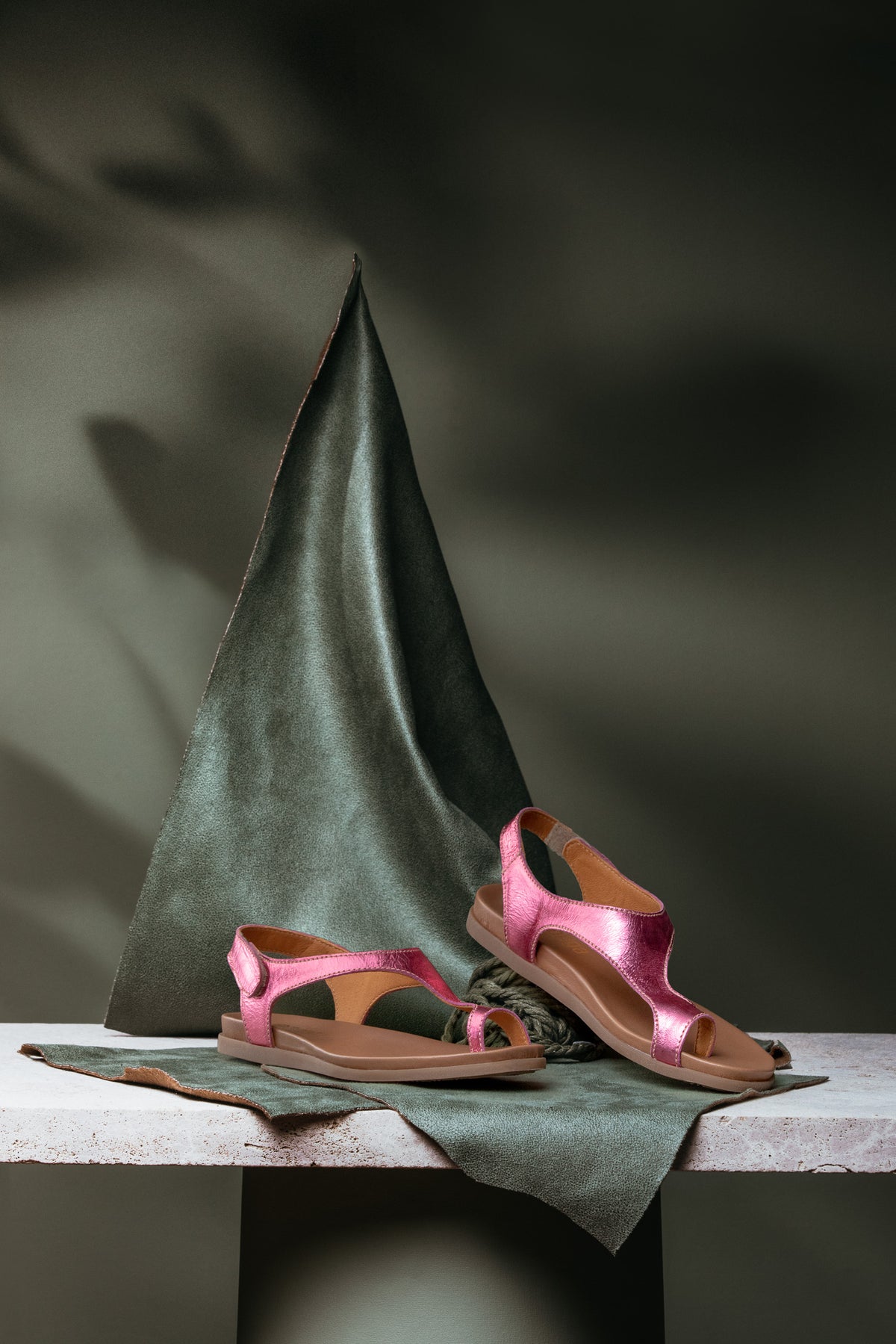 Unique toe-thong vamp design.