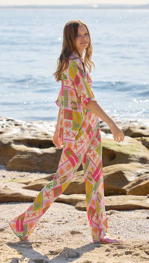 The Under The Sea Bias Cut Pant is probably the most comfortable pant you will ever own, guaranteed. Featuring a playful postcard print infused with vibrant colours that will add that pop of colour you've been missing. Style with our matching Under The Sea Oversized Shirt over our Under The Sea One Piece for a complete resort look.