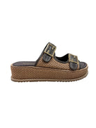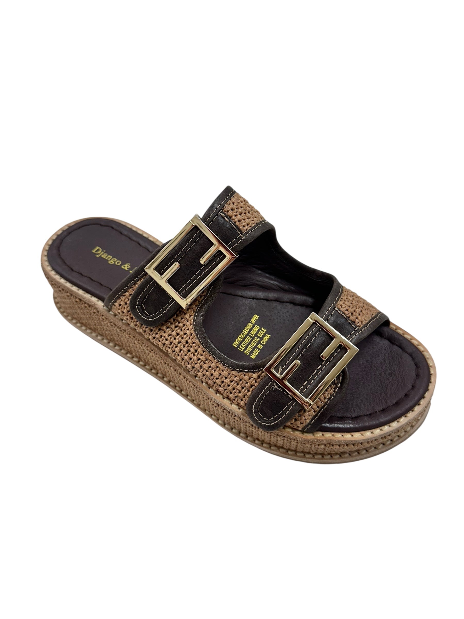 Step into fun with Vexta sandals, featuring rich chocolate leather, playful raffia details, and shiny gold buckles. Adjustable Velcro straps make slipping them on and off a breeze, while ensuring the perfect fit for every adventure.