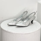 Adorn your feet with the Viper-Silver, a stunning shoe that's perfect for any event. Crafted from soft leather, its kitten heel is elegant and stylish while the sling back adds an exquisite touch. Take your look to new heights with the Viper!