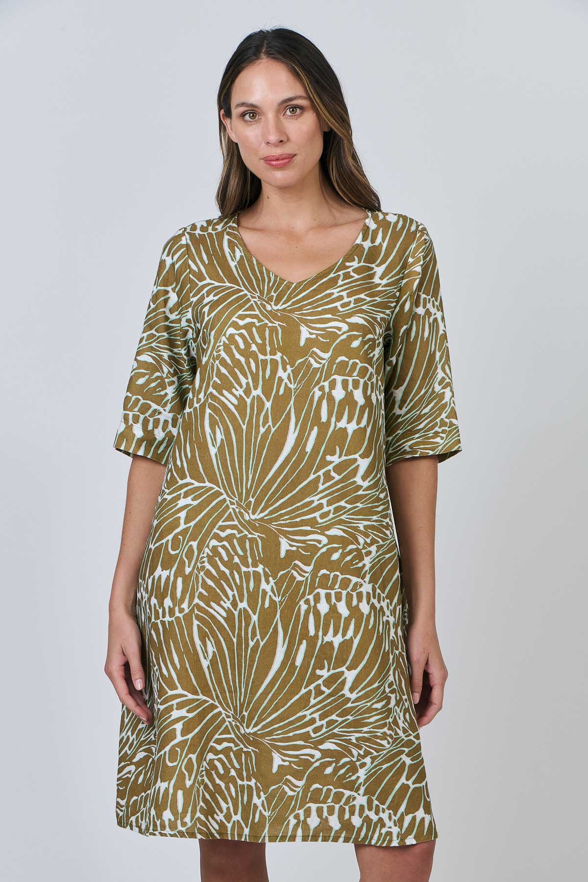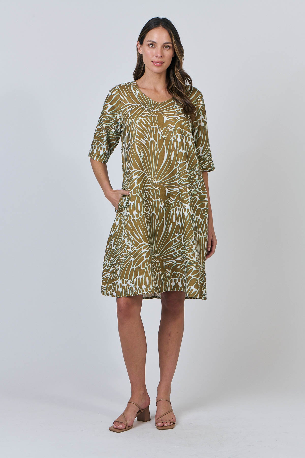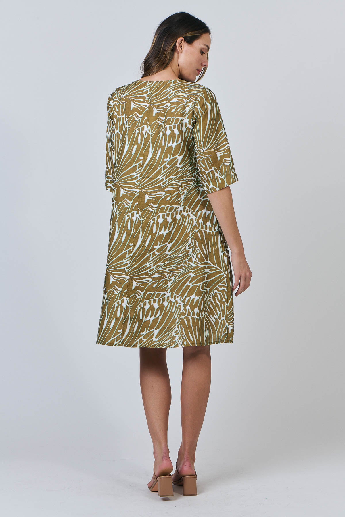 A dress so light, you'll forget you're wearing it. Crafted from 100% linen, GA526 features a flattering V-neckline and three-quarter sleeves, providing a fresh, airy feel. With hidden side pockets for added convenience, it’s the go-to for sunlit afternoons.