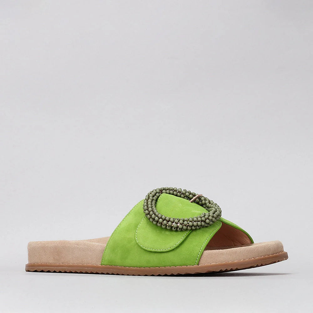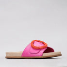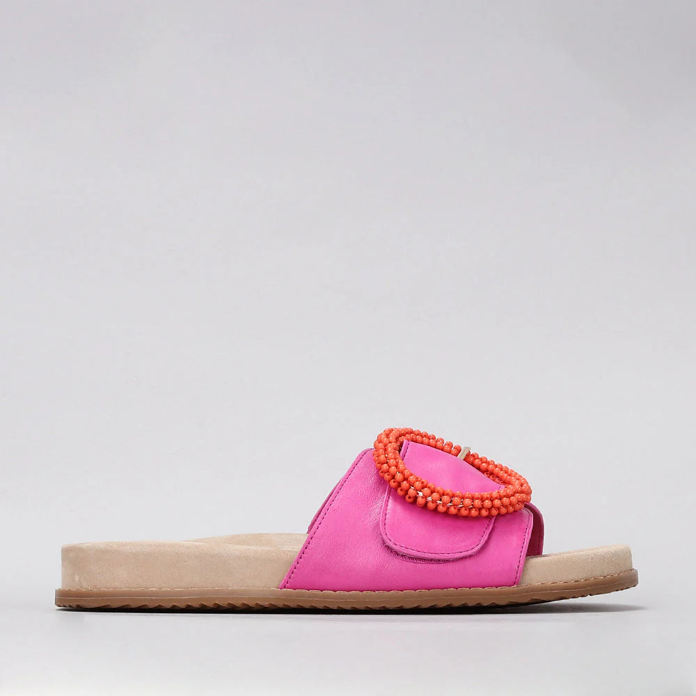 Step into effortless style with Zoya, a slide designed on the signature Naked Arches footbed for all-day comfort. The standout feature is its beaded circular buckle, adding a touch of elegance to the fresh, vibrant upper. Versatile yet eye-catching, Zoya is the perfect blend of design and everyday wearability, making it a true summer statement piece.